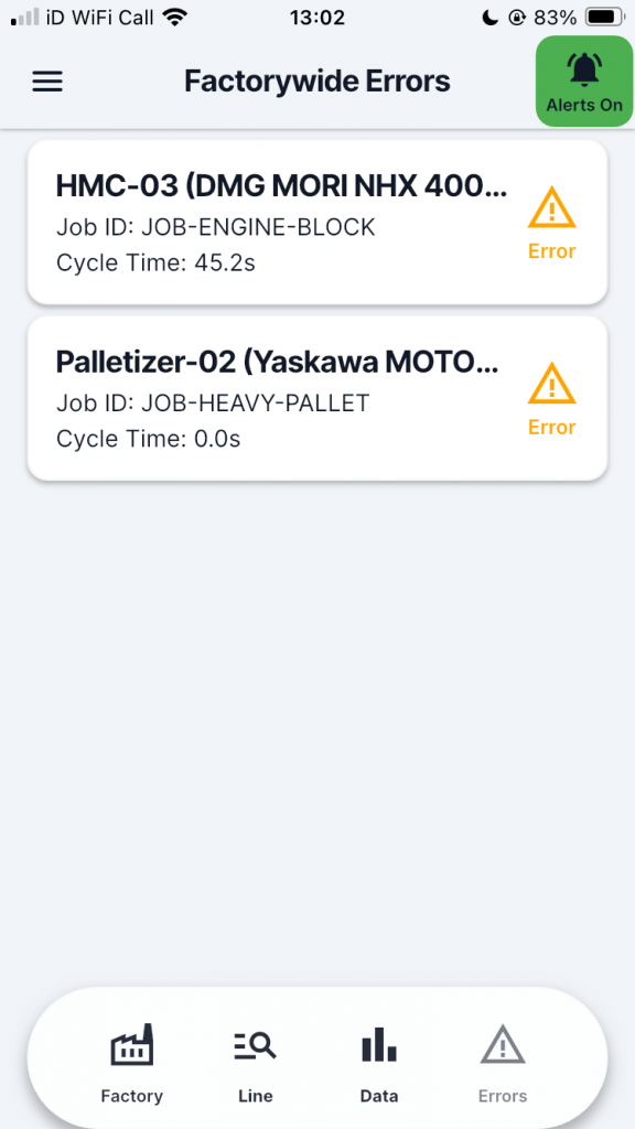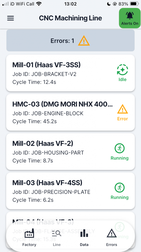 - Track cycle counts, cycle times, downtime, and overall productivity—all updated live.