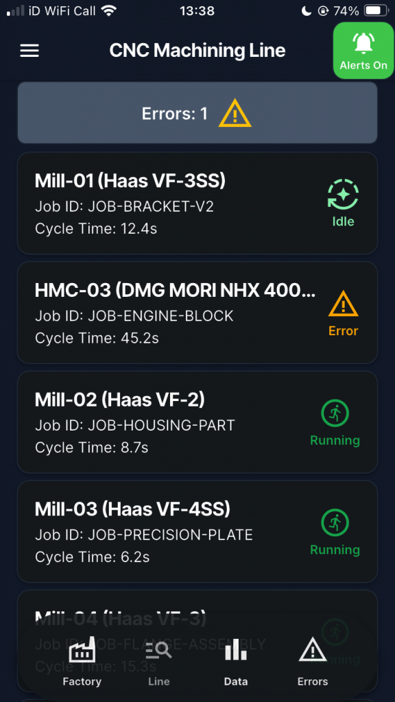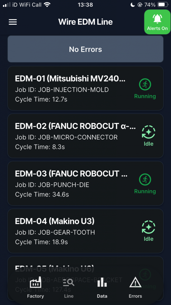 ✔️ Monitor assembly lines and machining centers